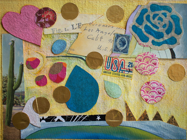 The idea evolved as I was making these collages that they would be postcards to loved ones, known and unknown, across the great divide of the covid crisis.