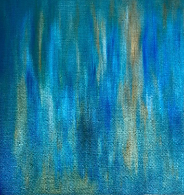 Afin que la surface ne soit pas rigide et plane et que l’on puisse ressentir et entrer dans sa matière, j'ai travaillé sur du lin non apprêté, non monté sur châssis, pour retrouver sa véritable nature, celle du matériau souple.